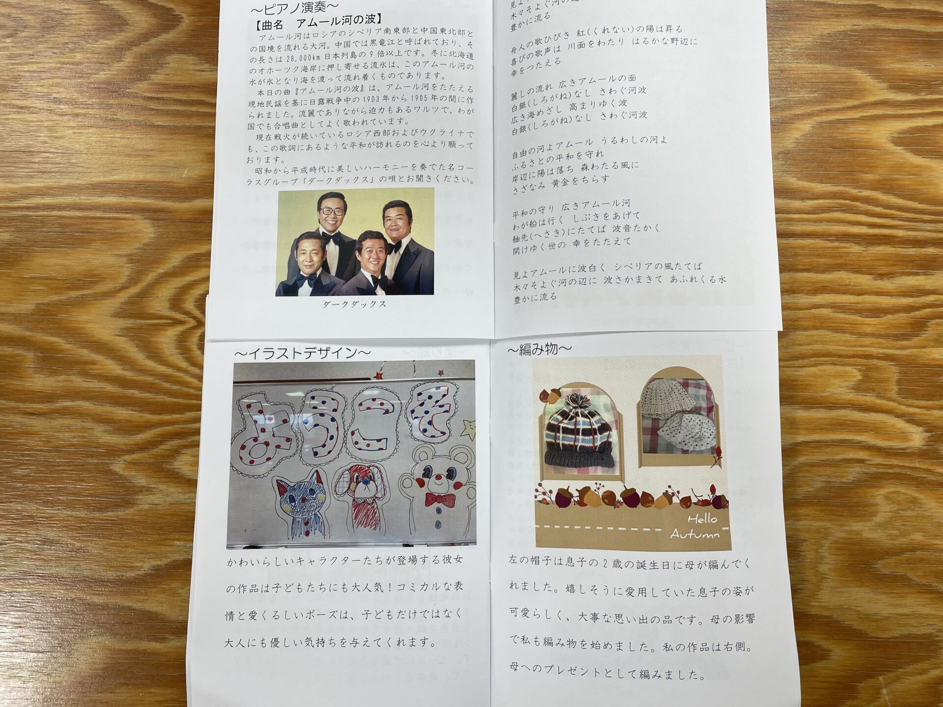 その他、冊子を作り写真とコメントでエピソードなどを紹介いたしました。