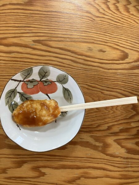 それを焼いてほんのりごげめがついたら、甘味噌のタレをつけれ完成!みんなで五平餅をいただきました。