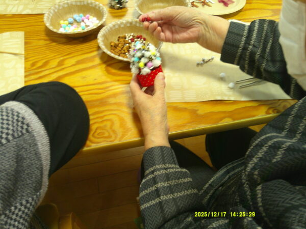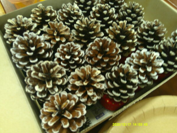 クリスマス飾りとして松ぼっくりを使ったツリー作りを開催しました。