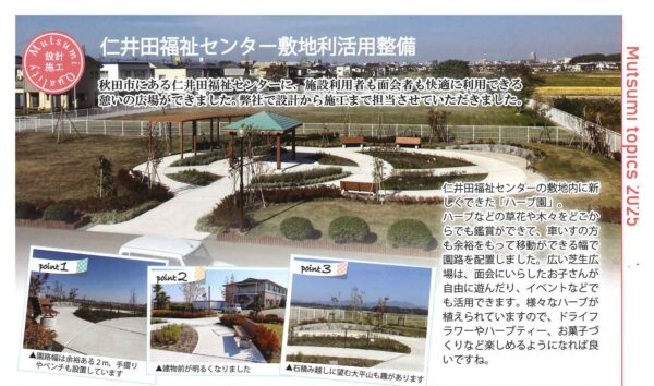 昨年完成いたしました仁井田福祉センターのハーブ園。
