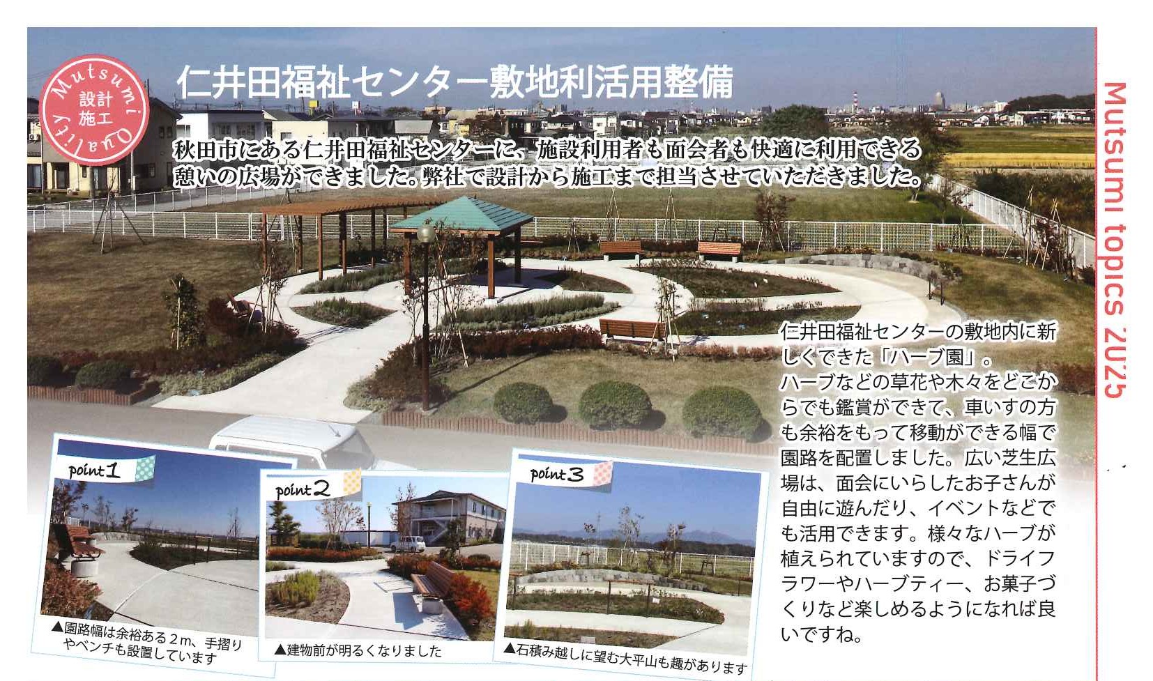 このたび、設計・施工いただきましたむつみ造園土木株式会社様が刊行しております機関紙